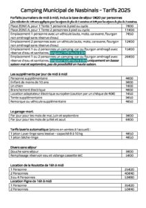 Tarif 2025 Camping BLANC 24072025