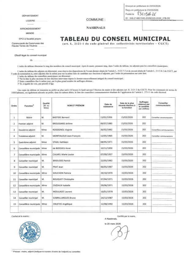 Avis Conseil municipal du 20 mars 2026