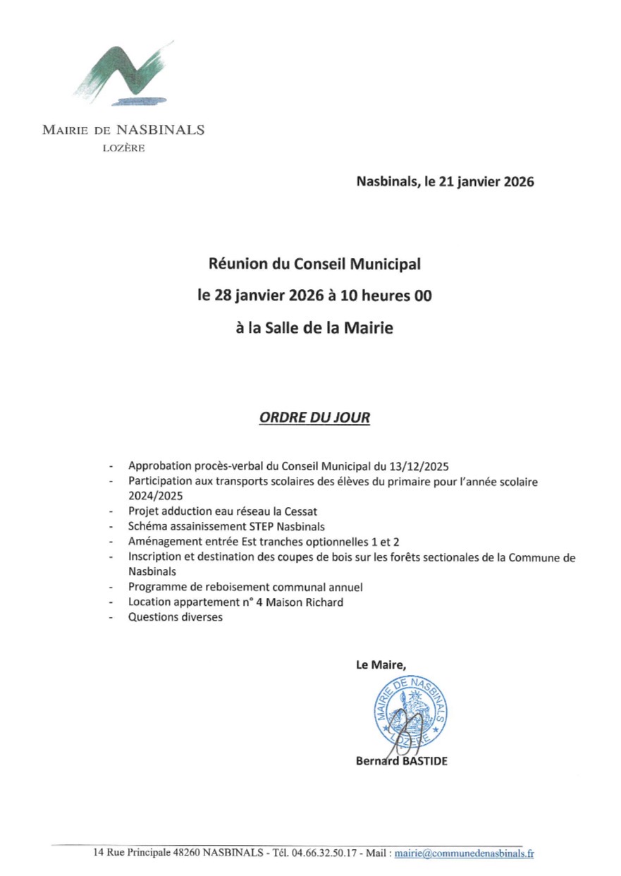 Avis Conseil municipal du 28 janvier 2026